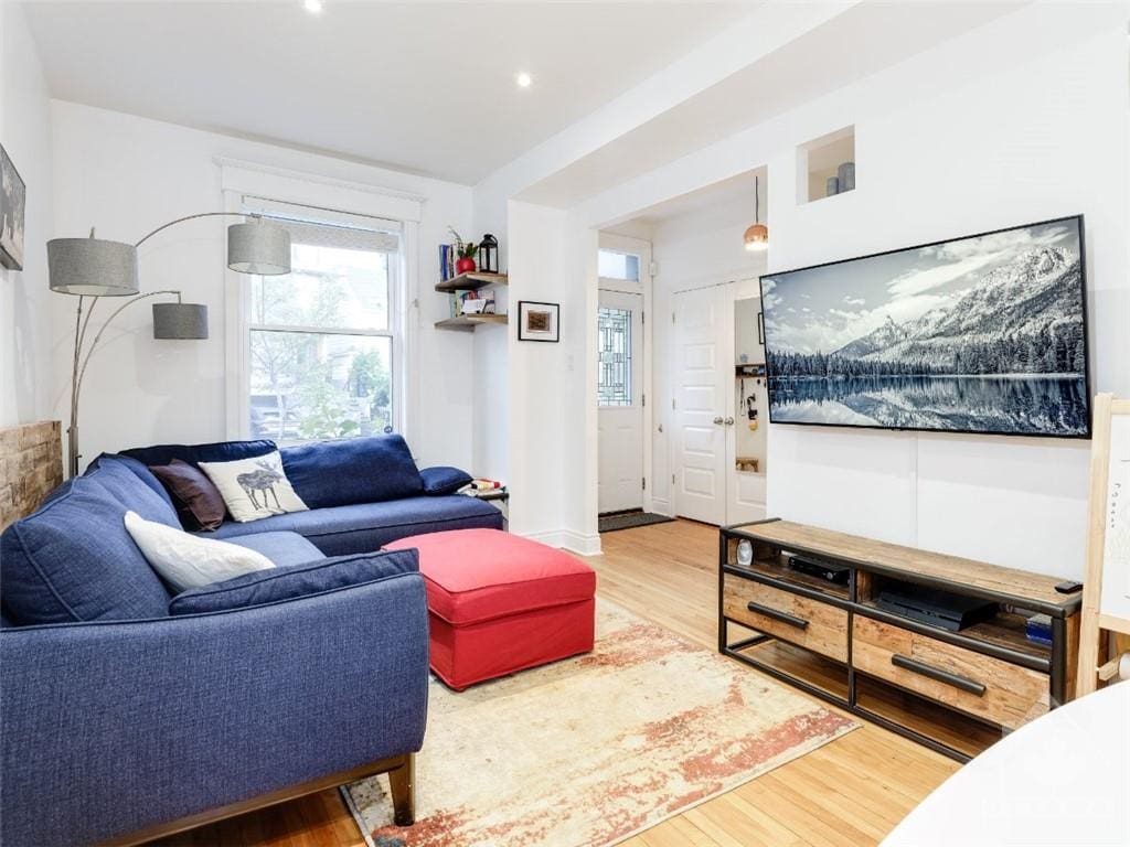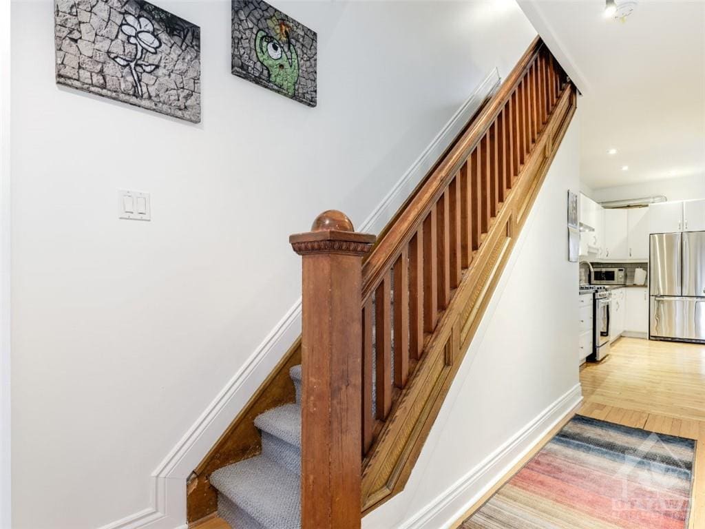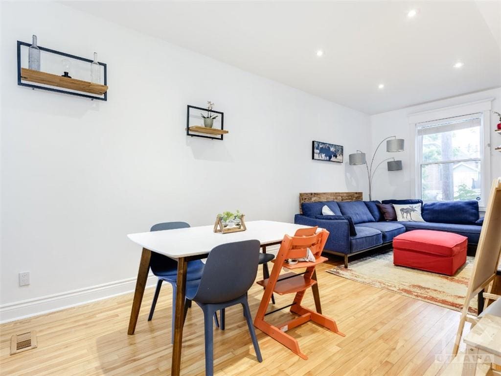 LIVE THE GLEBE LIFESTYLE !!! Centrally located in The Glebe with easy walking distance to many amenities of Bank Street and Lansdowne. This extensively renovated semi detached home is characterized by warm hardwood floors and much natural light from tall windows. An open concept living and dining room has views of both the street and rear yard. The updated kitchen has a subway tile backsplash, s/s appliances, gas stove, direct access to the back deck. An area by the window is perfect as a coffee station. A practical powder room on the main floor rounds out this level. Upstairs is a renovated bathroom and 3 bedrooms, master bedroom with closet and access to a balcony with views of the family-friendly neighbourhood below. Full basement allows for plenty of storage. One car parking at the rear. Proud landlord owner looking for that perfect tenant who will appreciate this beautiful home and take care of it.