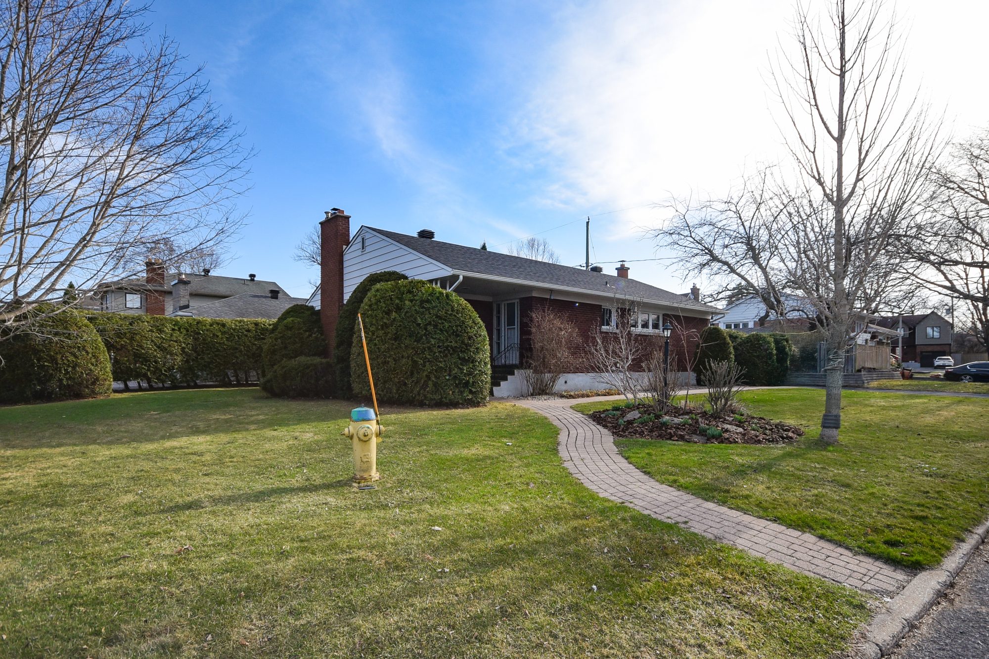 Fantastic location on an inside corner lot in perhaps the best section of Elmvale Acres. This super clean ready to move in full brick exterior Bungalow has been the pride of ownership to same owner for the last 48 years. Nice sized 3 bedrooms, main floor updated 4 pc bath, spacious living, separate yet open dining area with build in hutch. Hardwood floors throughout. Large picture windows and living room wood burning fireplace. Updated kitchen with eating breakfast bar. Large main floor 3 season sunroom. Huge finished basement rec-room, another updated 3 pc bath, large laundry room plus plenty of empty basement storage area. Detached garage and storage shed area. Mature landscaped grounds. Be sure to check out this home. Great starter single home or perfect for empty nesters.